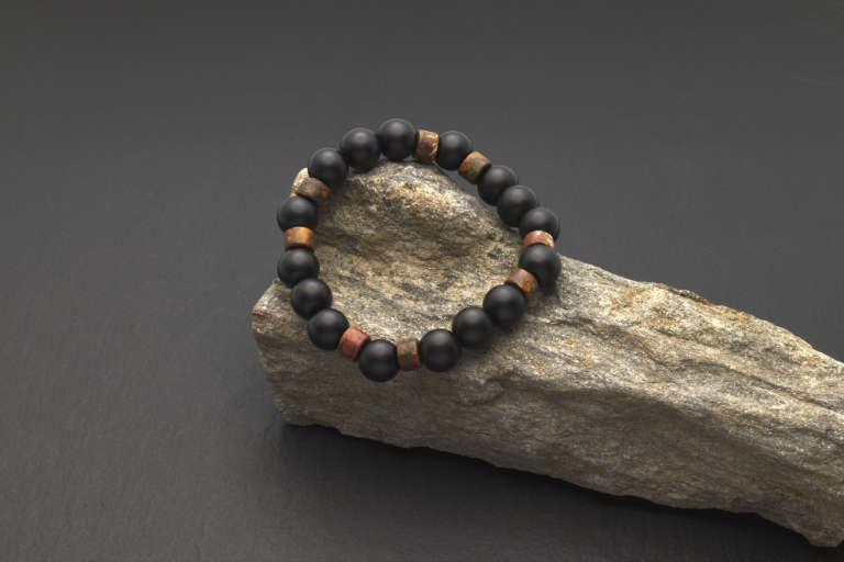 This bohemian bracelet made of polished lava rock and Greek ceramics on elastic nylon thread is very dainty and full of character. Perfect for a man or woman outfit on a summer evening. Combine it with an everyday look in any season of the year. Andorinart® loves to combine this piece with a total rocker look, both masculine and feminine.