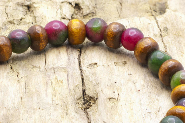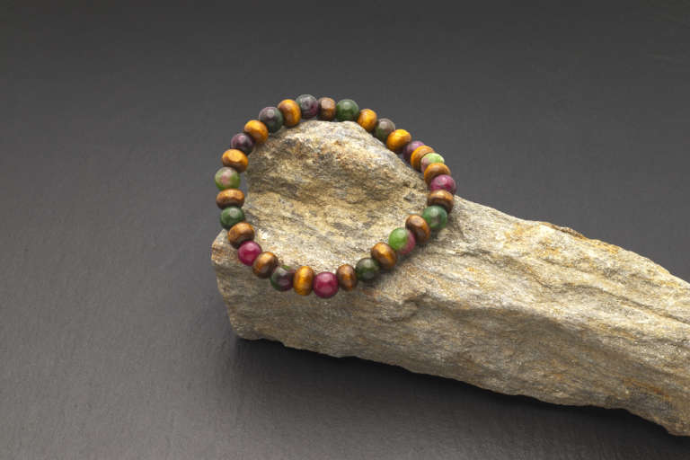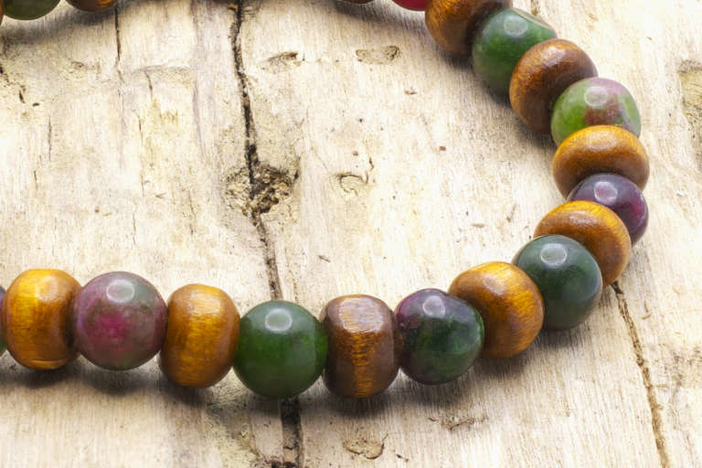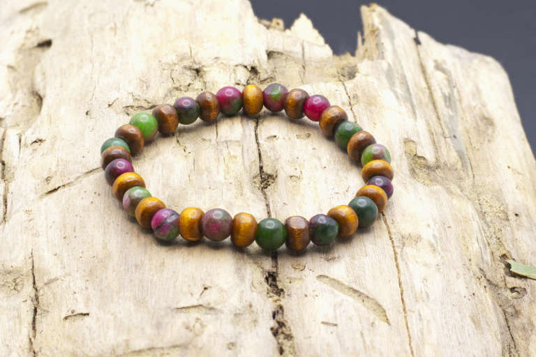 It is a diffuser bracelet with the ruby in zoisite stones and wooden beads on an elastic nylon thread.