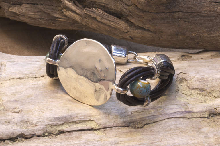 This exclusively designed leather bracelet in boho style is part of the Treasures of the Cosmos collection by Andorinart®.