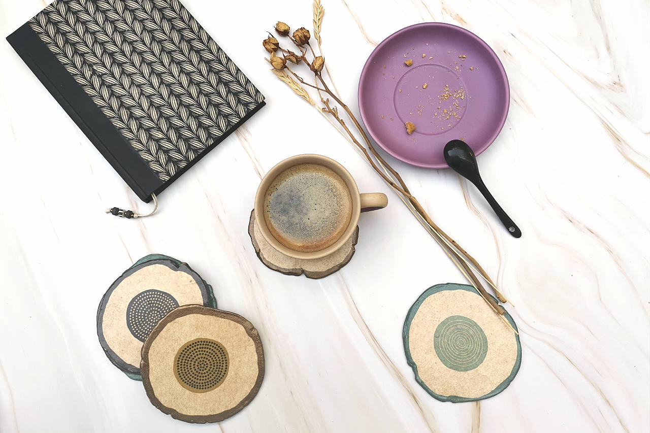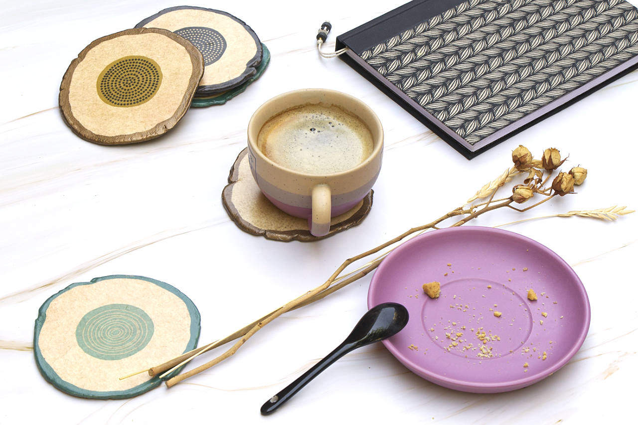 Con un diseño único y funcional, estos posavasos hechos a mano no pasarán desapercibidos gracias a sus llamativos colores propios de la tierra, el agua y los minerales. Como si de un bosque se tratase, cada pieza tiene una identidad única, no hay ninguna igual.