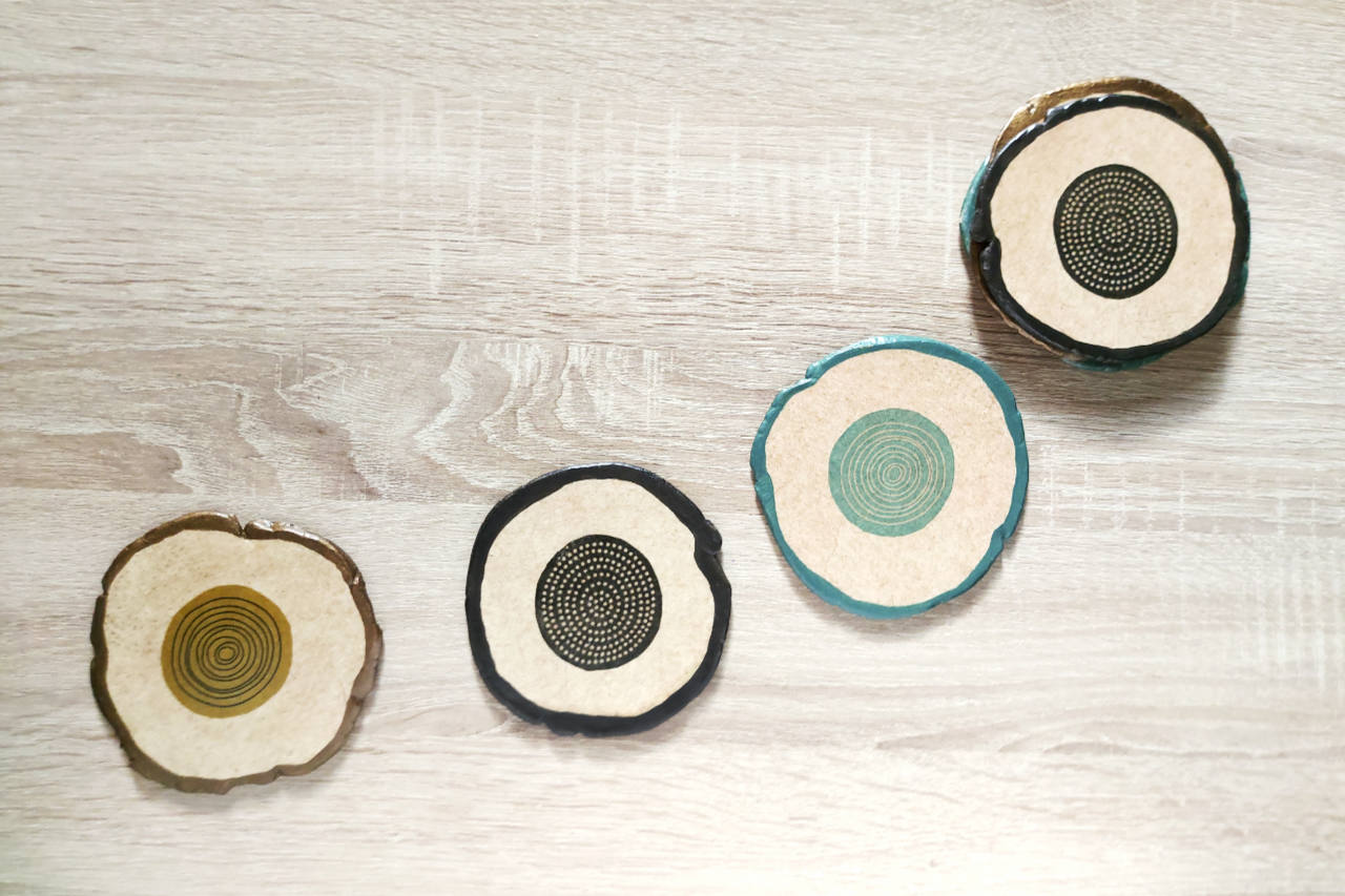 Set de posavasos artesanales de diseño único inspirados en la Naturaleza y sus bosques. Este precioso juego es ideal para conectar con la Naturaleza y su armonía.