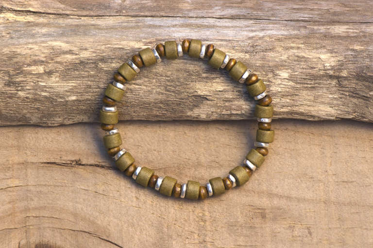 Pulsera de cuentas de estilo bohemio elaborada artesanalmente con piezas de zamak, cerámica y madera. Una joya con estilo y personalidad únicos y diseño exclusivo. En Andorinart@ nos encanta combinar esta pieza con la pulsera de cerámica bohemia "Horus"