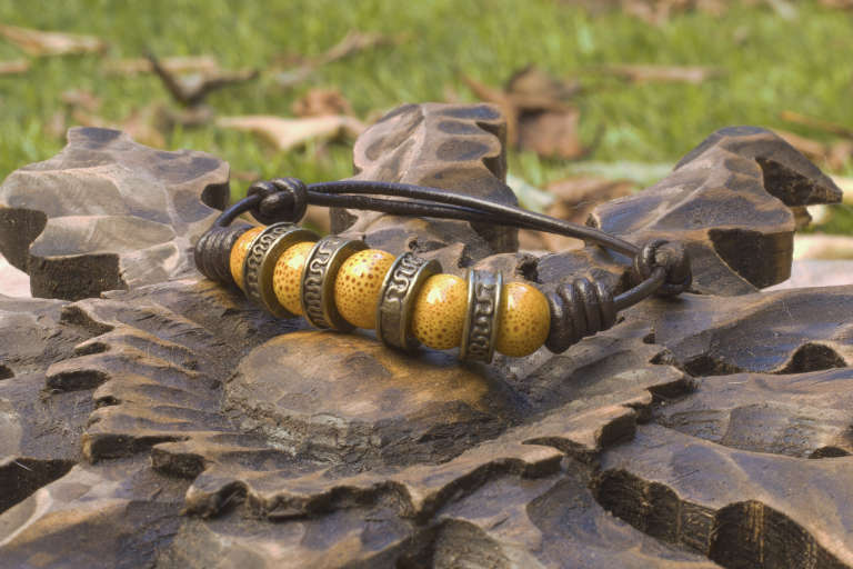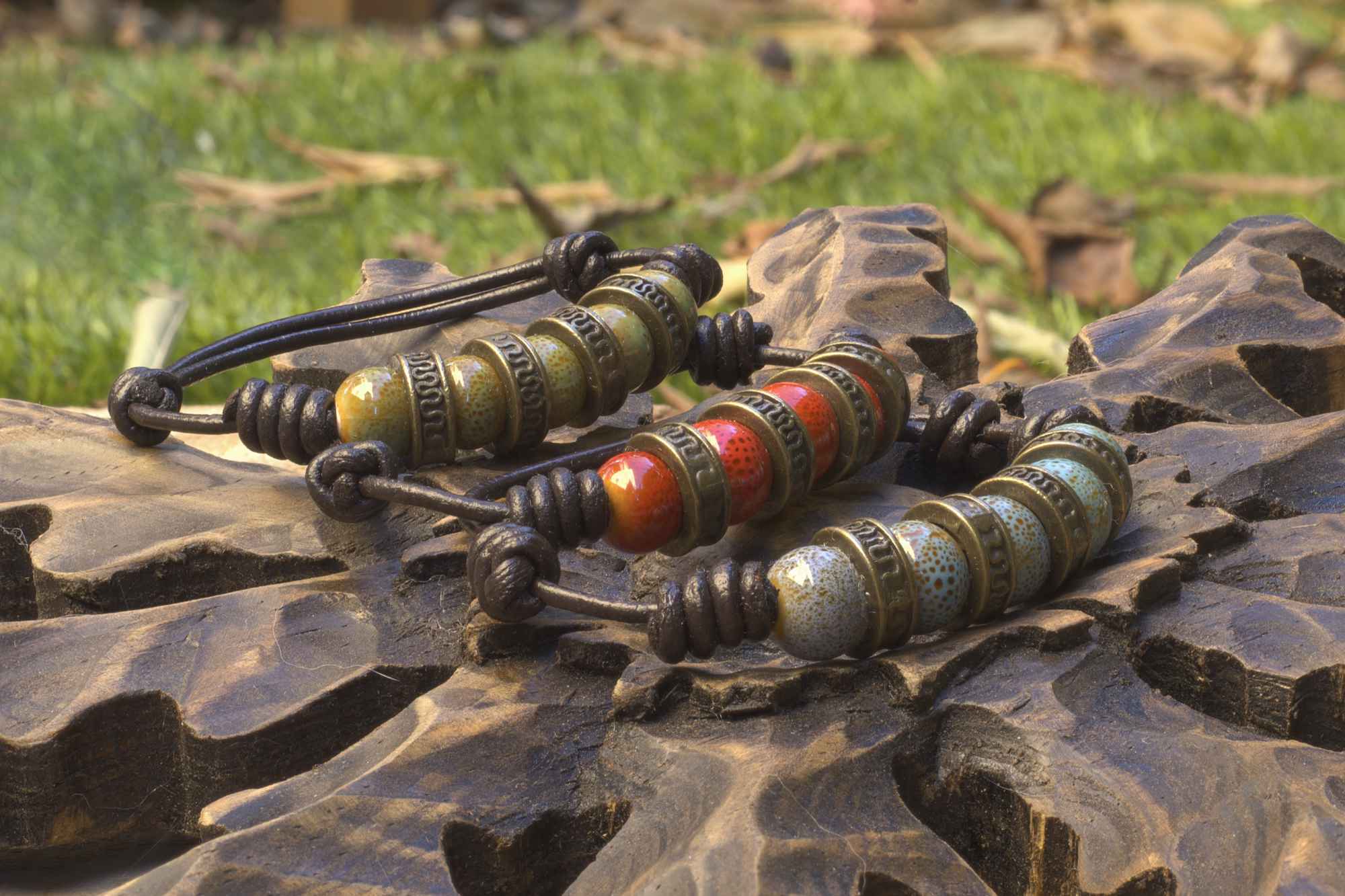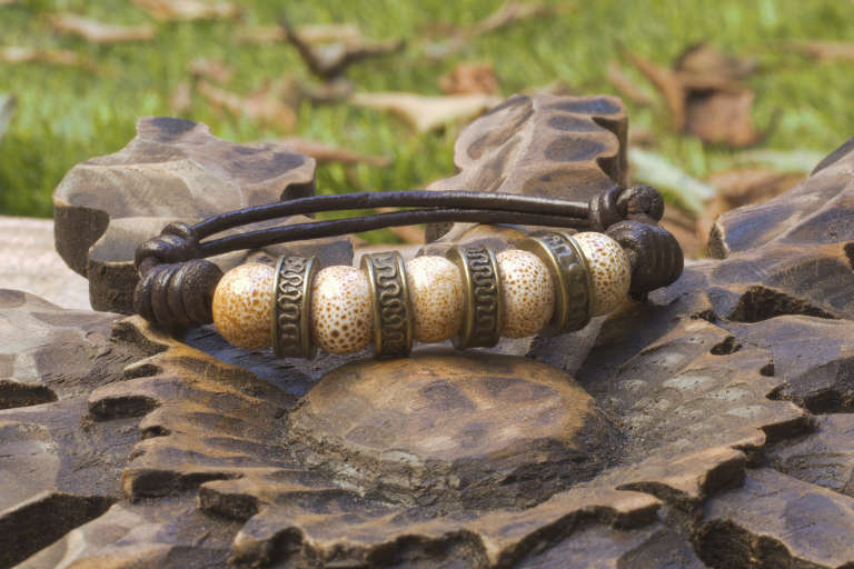Pulsera de cuero de estilo boho inspirada en el Antiguo Mundo y la Naturaleza.